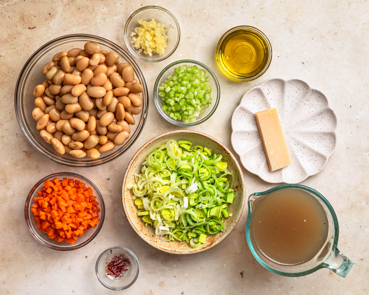 - flavour boosters – to take the broth from plain to amazing I’ve added saffron and parmesan rind. The parmesan rind adds a lovely umami flavour and the saffron threads add that unique saffron flavour, which is almost buttery. You can use fresh herbs instead of saffron if preferred like thyme or oregano.